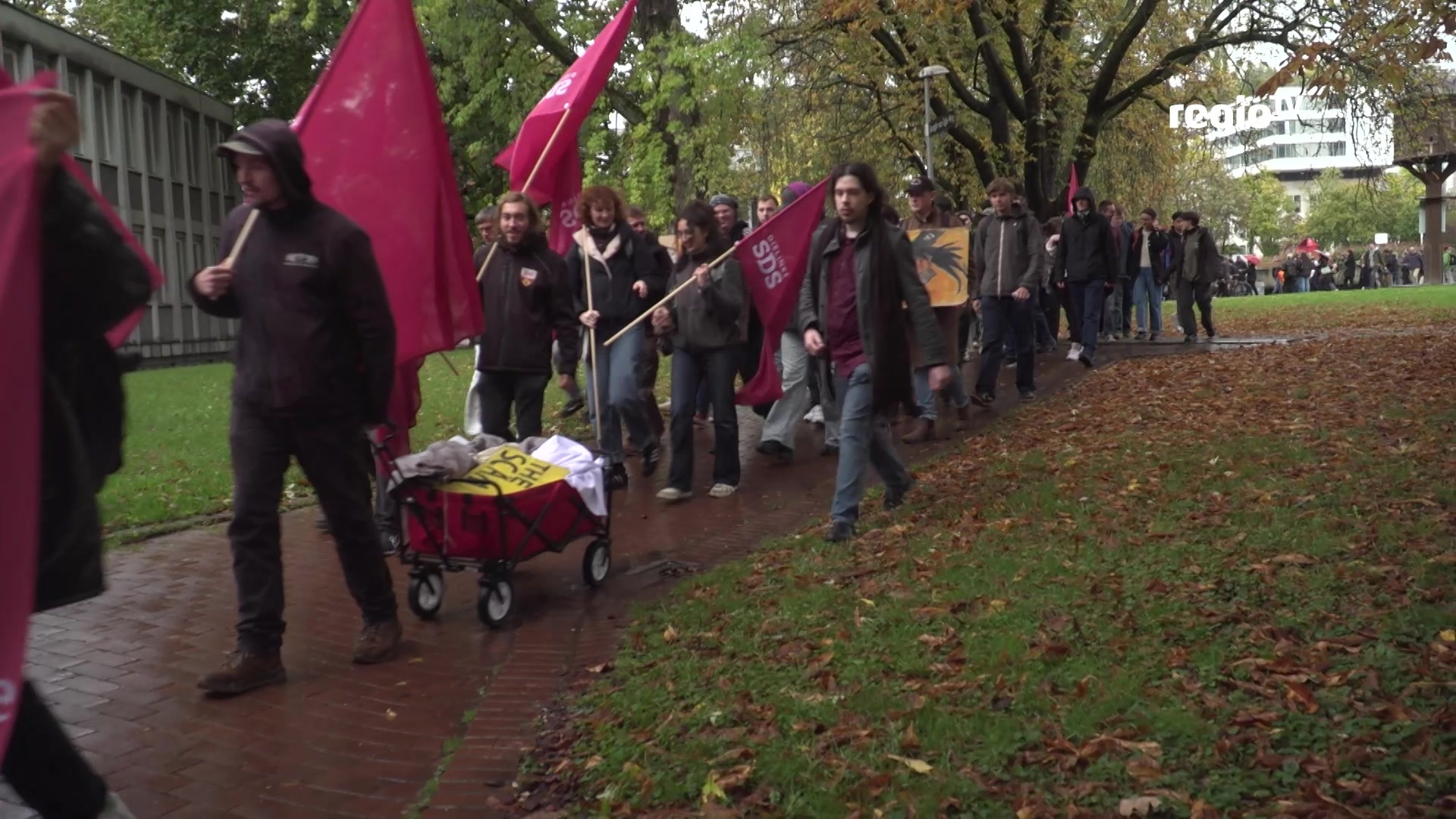 Corona ist vorbei – trotzdem müssen die Studierenden der Universität Stuttgart nach Weihnachten wieder zwei Wochen in die online-Lehre, da die Hörsäle wegen zu hohen Energiepreisen geschlossen werden sollen. Das ist noch nicht alles, denn auch die Uni Bibliothek ist seit Monaten sanierungsbedürftig und deshalb für die Studentinnen und Studenten nicht zugänglich. Gründe – die bei den Lehrenden für Frust sorgen und sie auf die Straße zwingen: Unserer Reporterin Cara Döhlemann ist auf der Demo vor Ort.