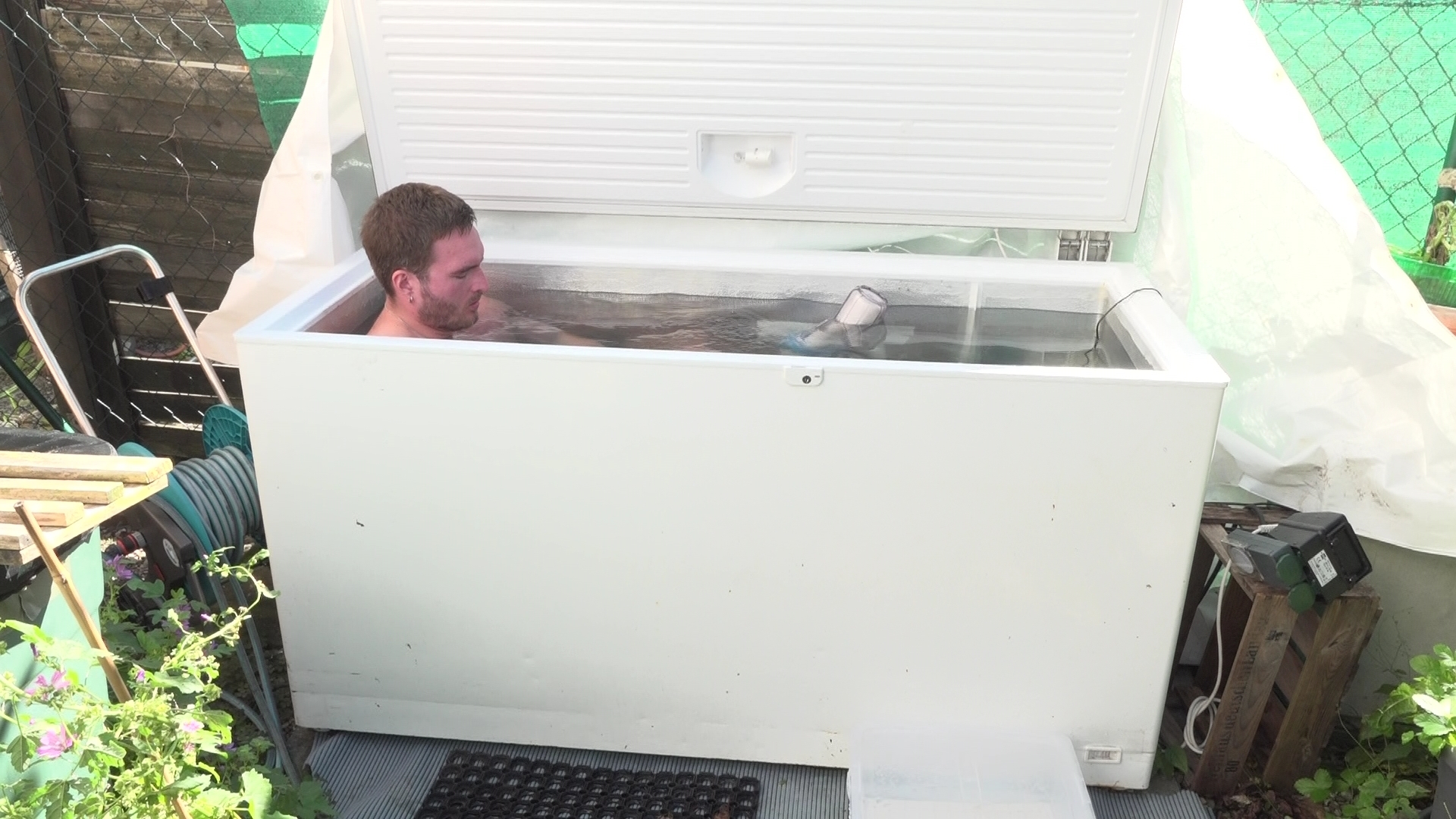 Eisbaden hat positive Auswirkungen auf die Durchblutung und das Immunsystem. Kaltes Wasser zieht die Hautgefäße zusammen und steigert die Durchblutung, was den Blutdruck senken kann. Der Wechsel von Kälte und Wärme stimuliert das Immunsystem und reduziert Entzündungsmarker im Blut. Es verbessert auch das allgemeine Wohlbefinden, reduziert Stress und Müdigkeit und kann Beschwerden bei Rheuma, Fibromyalgie und Asthma lindern. Eisbaden setzt Glückshormone frei und fördert die Verbrennung von weißem Körperfett. Es sorgt für strahlende Haut durch bessere Durchblutung und Entzündungslinderung. Nicht nur der vielen positiven Effekte wegen hat Matthias Bleil aus Heidenheim mit Eisbaden angefangen. Dieses Jahr hat er sich einen Traum erfüllt und badet in seinem eigenen Garten – wenn auch in einem etwas ungewöhnlichen Behälter.