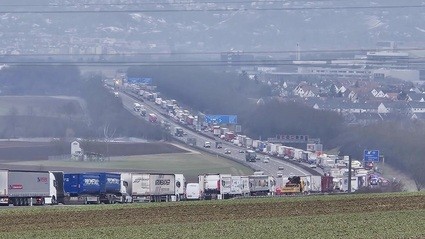 Reduzierung von 3 auf 1 Fahrstreifen vor dem Autobahnkreuz Wendlingen in Fahrtrichtung München.