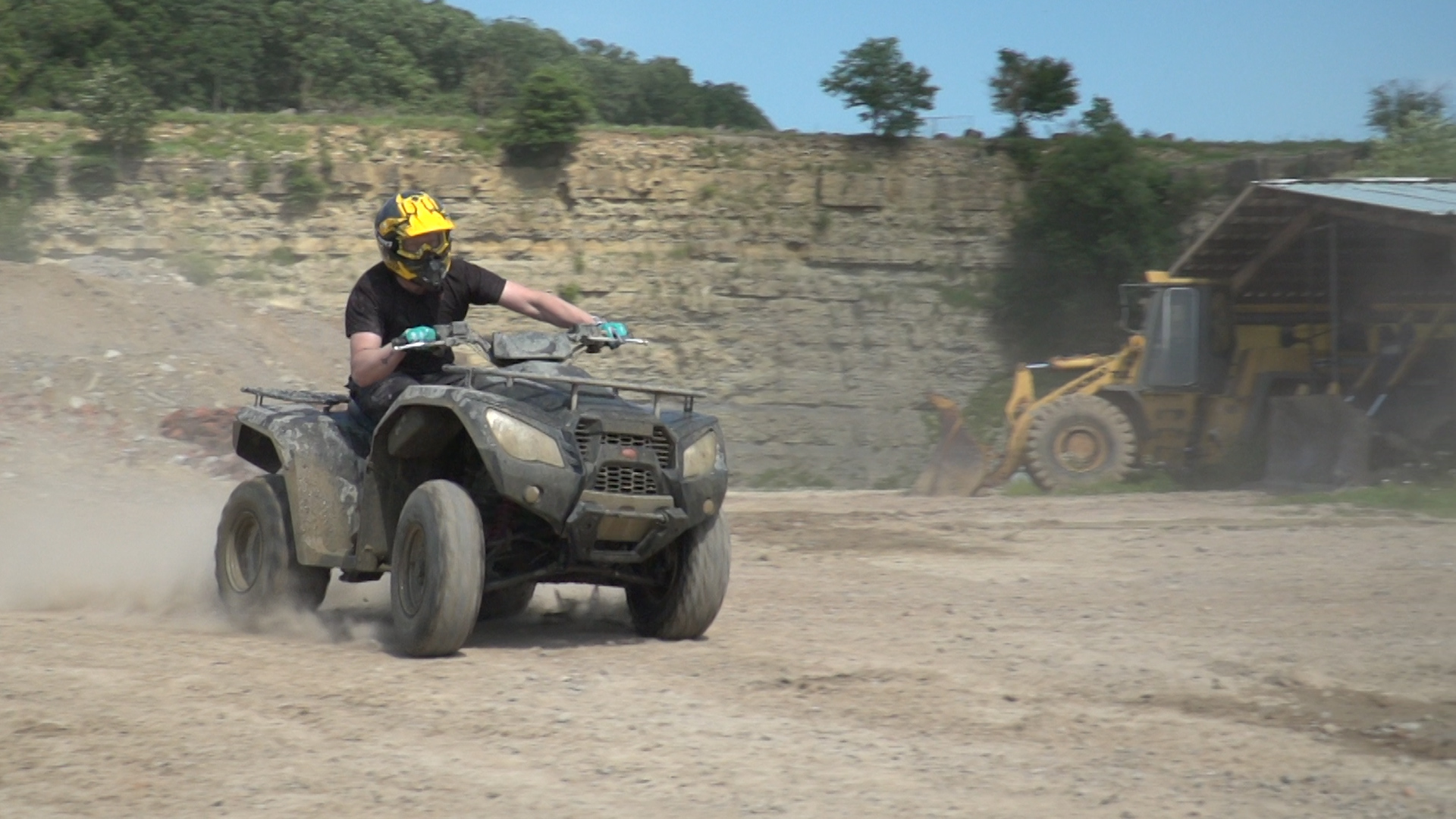 Dort haben wir eine Gruppe auf ihrer zweieinhalbstündigen Offroad-Tour mit dem Quad durch den Steinbruch begleitet. Mitmachen kann jeder, der mindestens 18 Jahre alt ist und einen Führerschein besitzt. Die Tour kostet dann 139 Euro pro Person. Auf der Tour fahren die Gäste über Staubpisten und Schotterwege, durch Schlammpassagen und natürliche Wasser-Durchfahrten und Verschränkungsstrecken. Guide Michael Kurth ist schon über sieben Jahre dabei führt durch die Tour, gibt Tipps und Hilfestellungen.