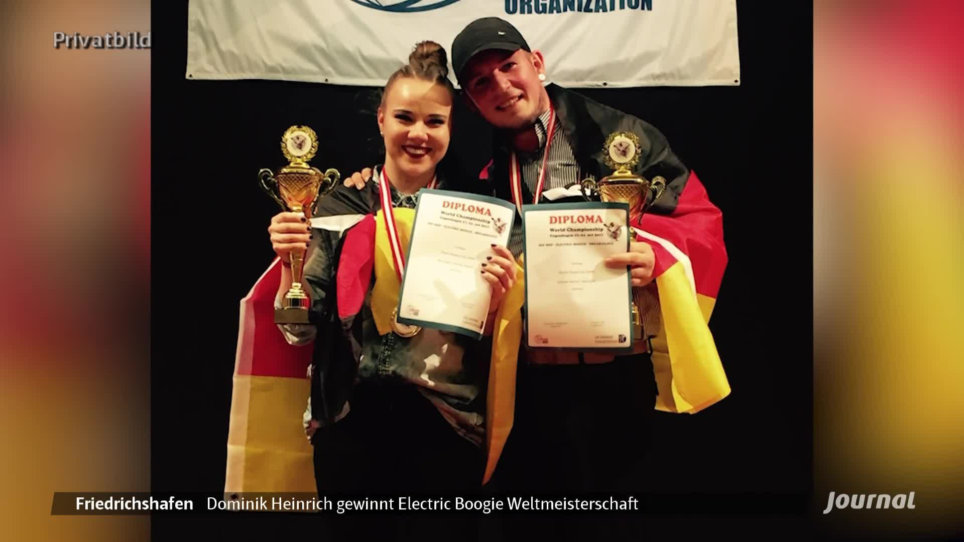 Dominik Heinrich hat es geschafft: Der Tanzlehrer aus Friedrichshafen krönte sich in Kopenhagen mit seiner langjährigen Tanzpartnerin Nina Zipfel zum Weltmeister der International Dance Organization (IDO) im Electric Boogie.