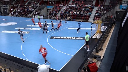 Döll war es auch, die vor 1683 Zuschauern in der Göppinger EWS-Arena nach 45 Sekunden den ersten Treffer der Partie erzielte. Die Abwehr der Gäste agierte von Beginn an aufmerksam und auch Ludwigsburgs schwedische Ausnahme-Torfrau Johanna Bunden war direkt im Spiel und nahm in der Anfangsphase vier freie Würfe der Göppingerinnen weg. So zog die HBL über 3:1 (4. Minute) früh auf 5:1 und bereits vier Tore davon (8.). Mehr als sieben Minuten blieben die Ludwigsburgerinnen ohne Gegentor und überstanden dabei auch das erste Unterzahlspiel schadlos. Anschließend nahm das Spiel etwas Fahrt auf und der HBL unterliefen einige technische Fehler, sodass FRISCH AUF nach 13 Minuten beim 6:7 wieder dran war. Gäste-Cheftrainer Jakob Vestergaard reagierte mit seiner ersten Auszeit. In der Folge setzte sich sein Team mit einem 4:1-Lauf auf 11:7 ab (22.). Ausgehend von einer eigenen Auszeit konnten die Gastgeberinnen wieder etwas verkürzen (10:12). Doch nach einer knapp fünfminütigen Phase ohne Treffer zog der Deutsche Meister kurz vor der Pause das Tempo nochmal an und ging mit einer 15:11-Führung in die Halbzeit.