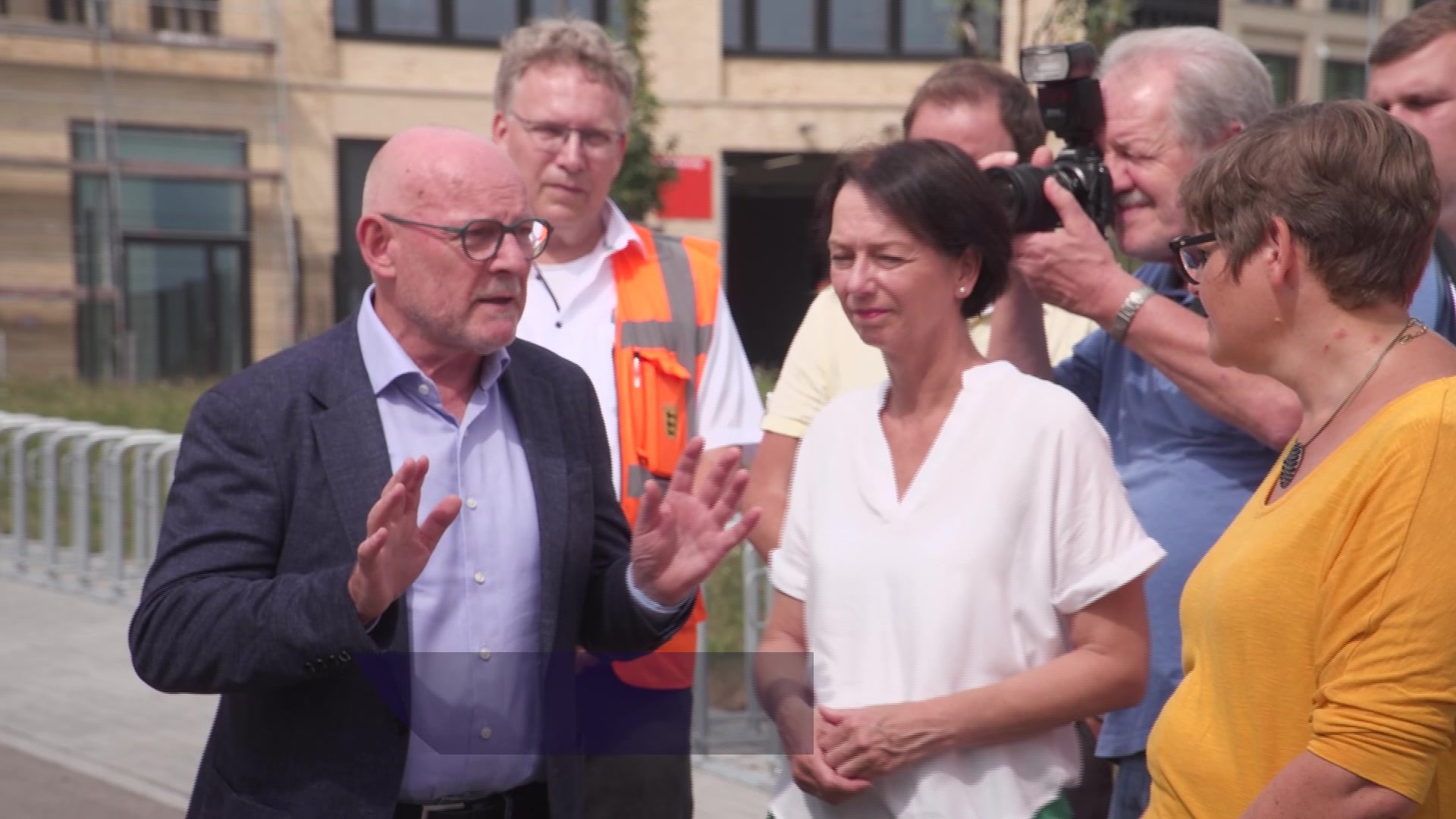 Verkehrsminister Winfried Hermann und die Regierungspräsidentin Susanne Bay haben heute die Brückenbaustelle über den Zubringer der B27 besucht.