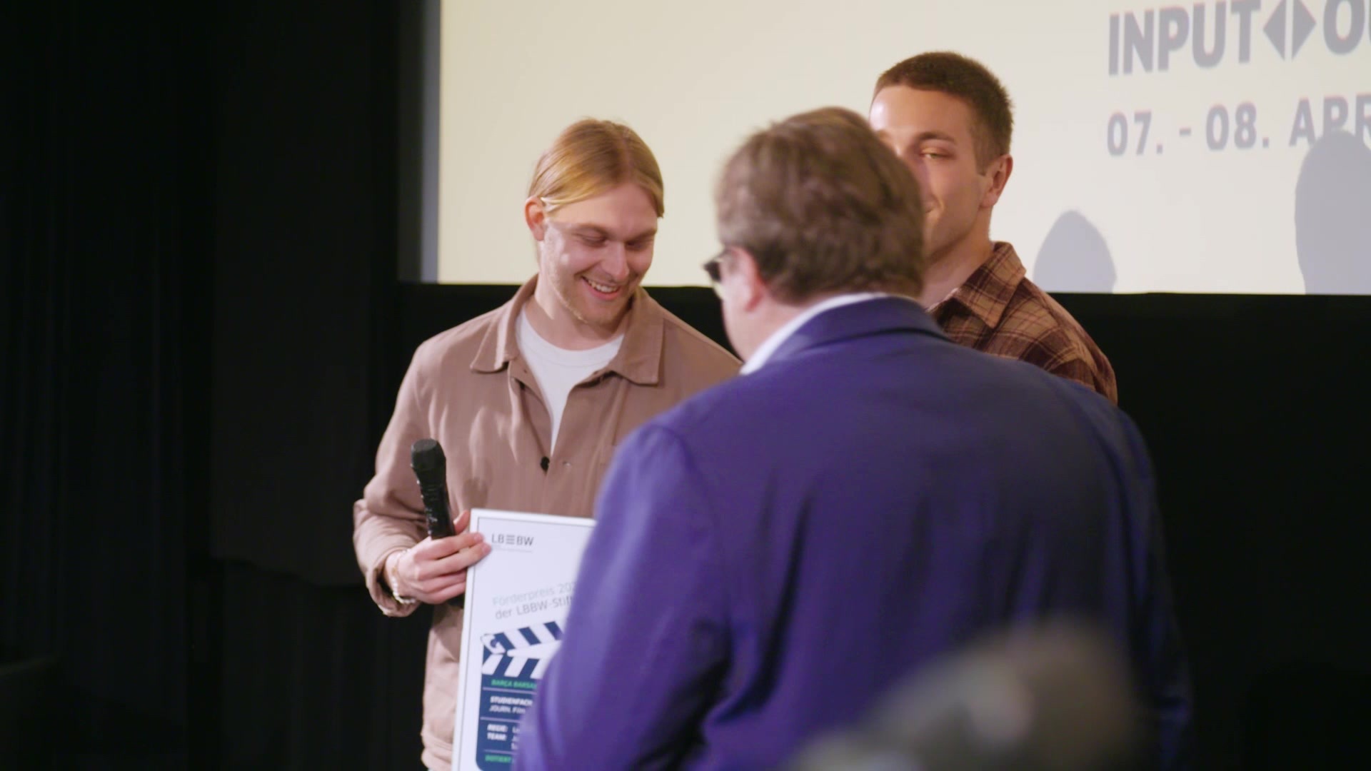 Im Rahmen des Symposiums Input Output der Filmakademie Baden-Württemberg fand die feierliche Filmpreisverleihung der LBBW-Stiftung statt. Der mit 3.000€ dotierte Preis fördert Filmprojekte des 3. Semesters. Von 17 Bewerbungen gewannen fünf Projekte aus den Bereichen szenischer, dokumentarischer sowie journalistischer Film. Die LBBW-Stiftung zeigt mit diesem Engagement ihre langfristige Unterstützung für die Filmkunst und trägt dazu bei, junge Talente in der Branche zu fördern und deren Projekte zu realisieren.
