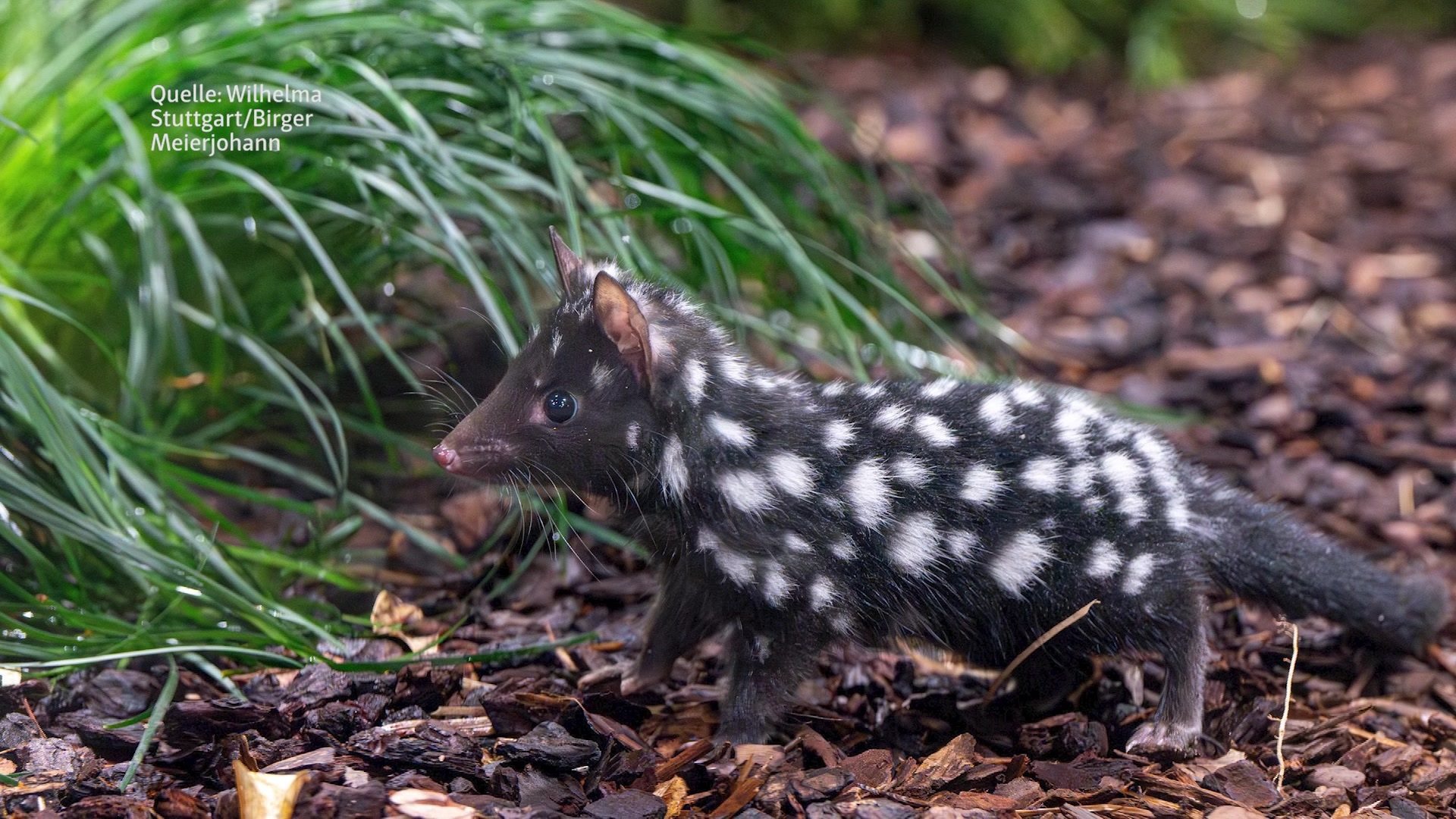 Gefleckter Nachwuchs bei den Quolls – in der Wilhelma Stuttgart gab es einen Zuchterfolg bei den Tüpfelbeutelmardern, die sogenannten Quolls. Nach einer Tragzeit von nur 34 Tagen brachte ein Weibchen Ende Oktober bis zu 30 Jungtiere zur Welt. Da die Mutter nur sechs Zitzen hat, überlebten nur wenige der Kleinen. Sie trug ihre Quoll-Babys mit dem Kopf im Beutel und dem restlichen Körper heraushängend. Seit Februar sind die Kleinen Quolls im Nachttierbereich der Terra Australis zu sehen. In Zoos sind Quolls eine Rarität: Außer in der Wilhelma werden sie deutschlandweit nur in drei weiteren zoologischen Gärten gehalten.