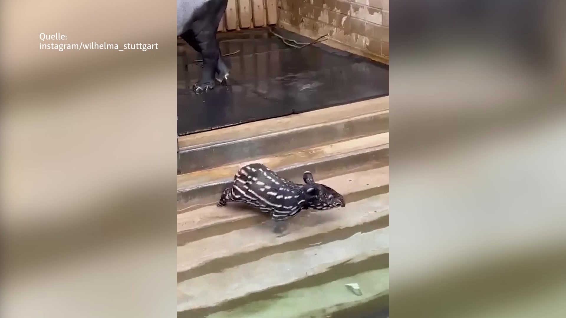 Vor knapp zwei Wochen hat es bei den Schabrackentapiren in der Wilhelma Nachwuchs gegeben. Inzwischen ist auch klar. Das Kleine ist ein Mädchen und hat den Namen Melati. Das bedeutet auf Malaiisch und Indonesisch Jasminblume. Mittlerweile ist die junge Dame auch schon ganz schön unternehmungslustig und dabei muss natürlich auch alles erkundet und ausprobiert werden, auch das Wasserbecken im Gehege. Bei diesen Badeversuchen muss Melati aber schnell feststellen, nicht alles klappt auf Anhieb, oft macht dann doch erst Übung den Meister.