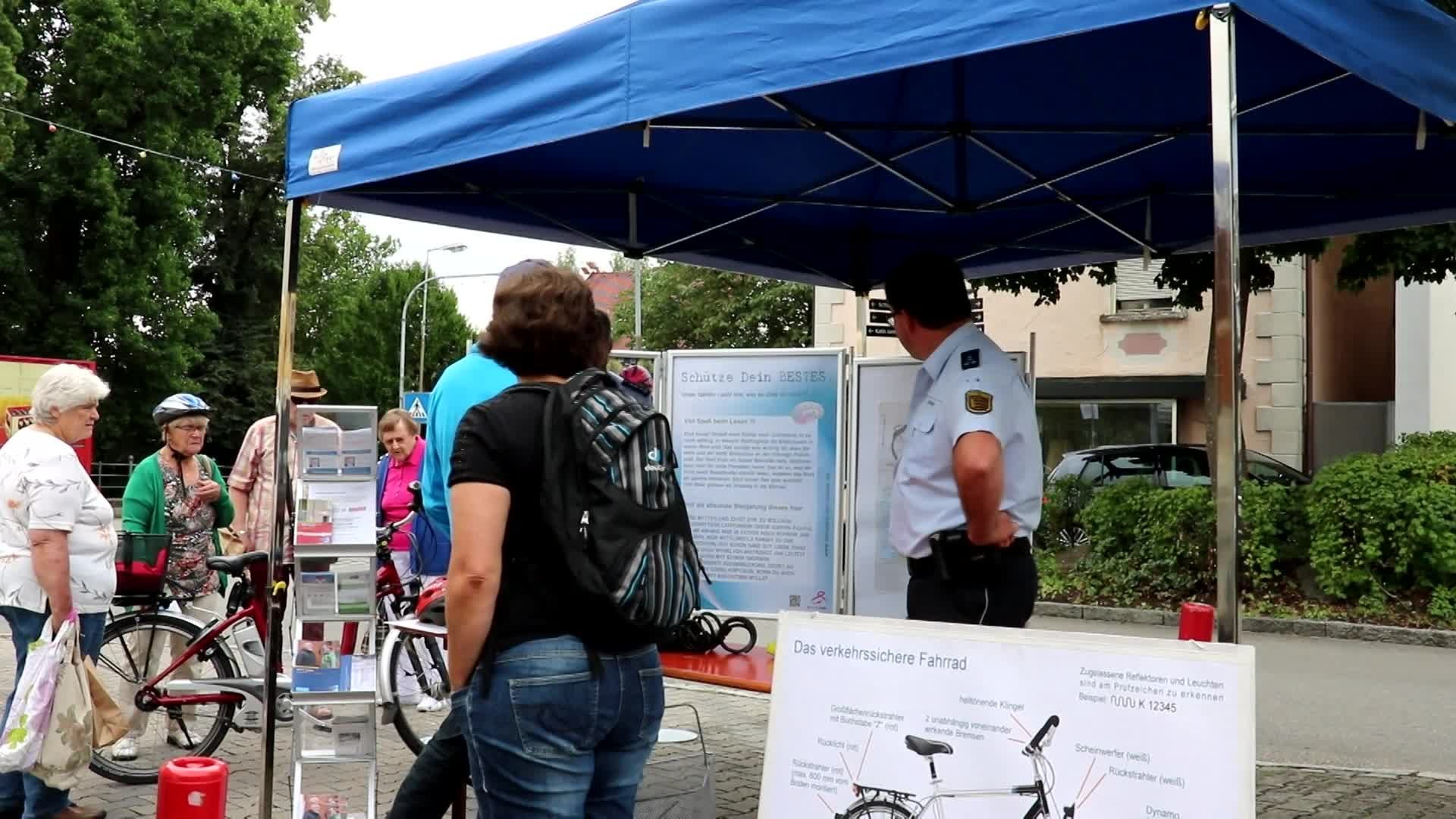Aulendorf (pau) – Mit der Aktion „Schütze dein Bestes“ sind Polizeibeamte des Polizeipräsidiums Konstanz am Donnerstagmorgen auf dem Wochenmarkt in Aulendorf unterwegs gewesen. Die Polizeihauptmeister Gerhard Messer und Peter Endres informierten an ihrem Stand über Sicherheitsschlösser für Fahrräder und Pedelecs und wiesen auf die Bedeutung eines Helms hin.