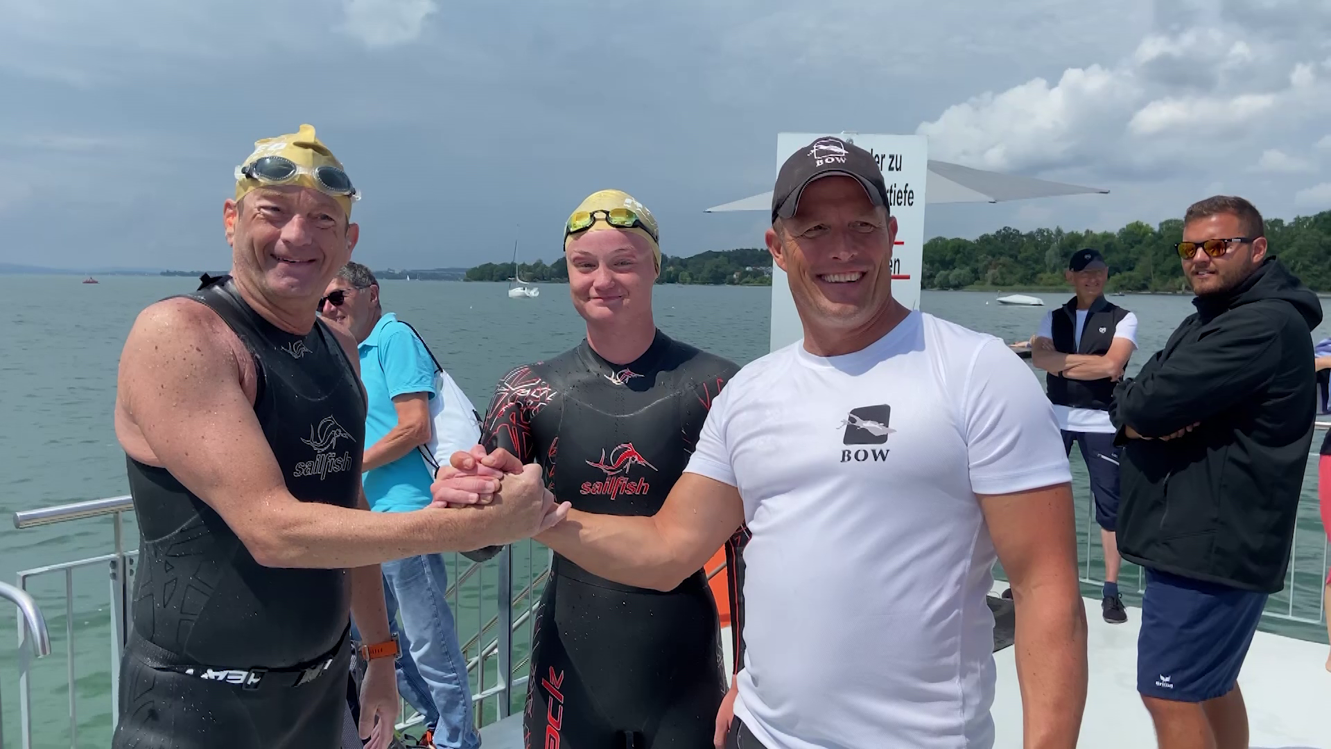 Glücklich, aber erschöpft steigt die 15-jährige Rosa Reitz aus Aschaffenburg die Leiter empor an Land. Soeben hat die junge Hobbyschwimmerin in weniger als 7 Stunden den Bodensee zweimal mit einer jeweiligen Streckenlänge von 11 Kilometern durchquert. Zur Belohnung versprach ihr Vater vorab ein Schnitzel XXL. Patrick Boche, der mit seinem Team von Bodensee Openwater e.V. derartige Seequerungen seit vielen Jahren organisiert, zieht den Hut vor dieser Leistung. Neben Rosa Reitz kamen Schwimmerinnen und Schwimmer auch aus den USA, Kanada, Mexiko und Italien zum Freiwasserschwimmevent am vergangenen Wochenende an den Bodensee.