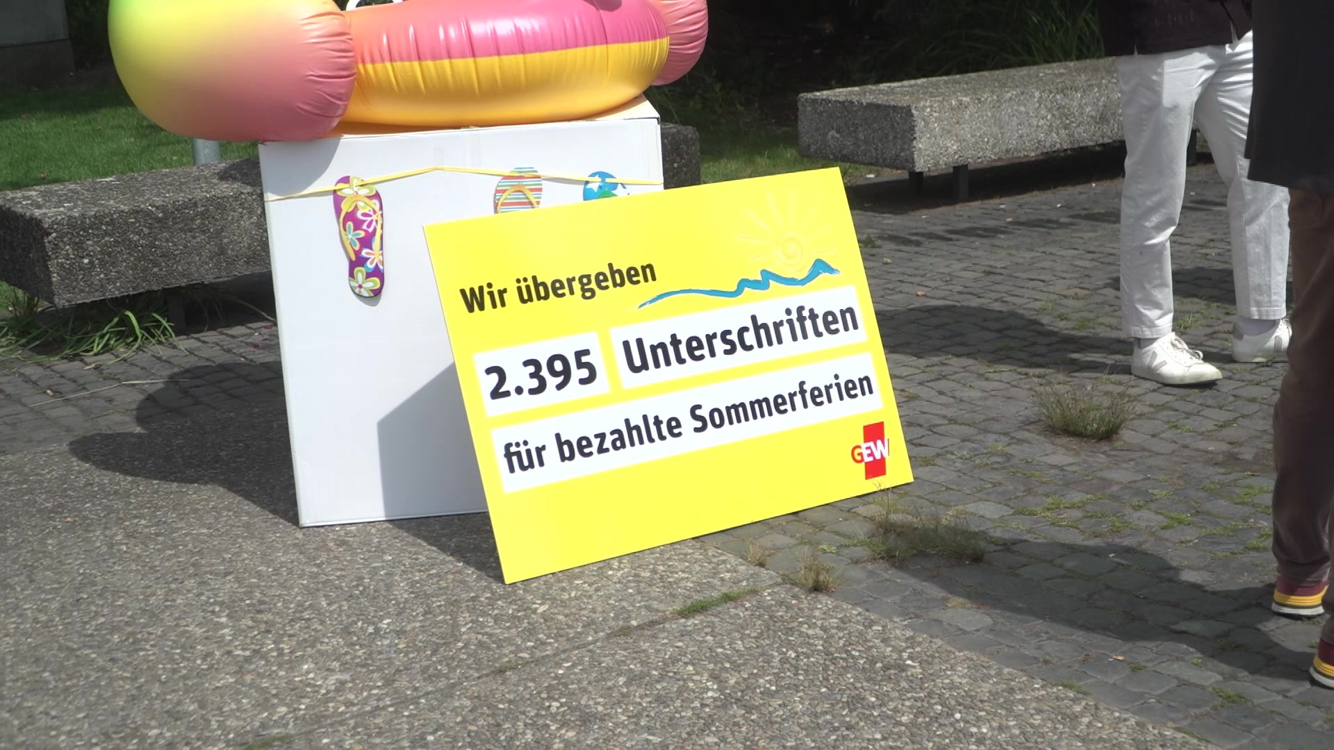 Die Gewerkschaft GEW hat in Stuttgart gegen die Sommerferienarbeitslosigkeit von Lehrkräften protestiert. „Damit es für Meer reicht“, so lautete das Motto der Protestaktion vor dem Stuttgarter Landtag. Von der Sommerferienarbeitslosigkeit betroffene Referendarinnen und Referendare übergaben dabei Postkarten einer landesweiten Aktion an. Laut GEW sind etwa 4000 Referendare im Land betroffen- so viele wie in keinem anderen Bundesland. Für sie endet die Ausbildung mit dem Sommerferienbeginn, die Einstellung fürs neue Schuljahr erfolgt aber erst sechs Wochen später im September.