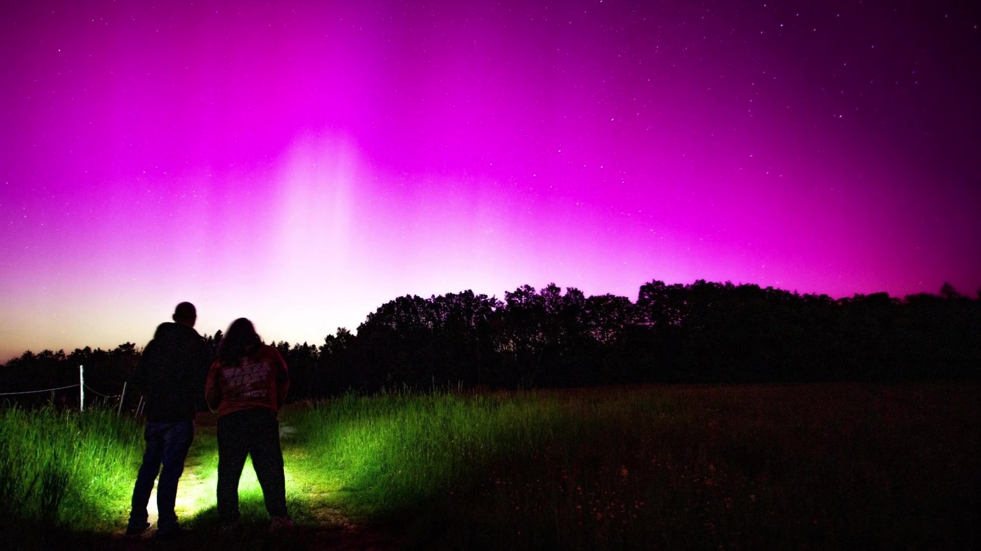 Eigentlich sind Polarlichter zumeist nur im hohen Norden zu sehen. Ein außergewöhnlich starker Sonnensturm hat das nun aber am Wochenende auch hier in der Region ermöglicht. Der aktuelle Sonnensturm gilt laut der US-Wetterbehörde NOAA übrigens als der stärkste geomagnetische Sturm seit den „Halloween-Sonnenstürmen“ von 2003. Insbesondere in der Nacht auf Samstag waren oft violette bis pinkfarbene Lichteffekte am Himmel über dem Südwesten zu sehen. Zahlreiche Menschen veröffentlichten Fotos und Videos davon in sozialen Netzwerken. Bei einem Sonnensturm werden elektrisch geladene Teilchen von der Sonne weggeschleudert. Geschieht dies in Richtung Erde, können die Teilchen bei uns ankommen. Treten sie in die Erdatmosphäre ein, entsteht das Leuchten – meist in grünlichen und rötlichen Tönen.