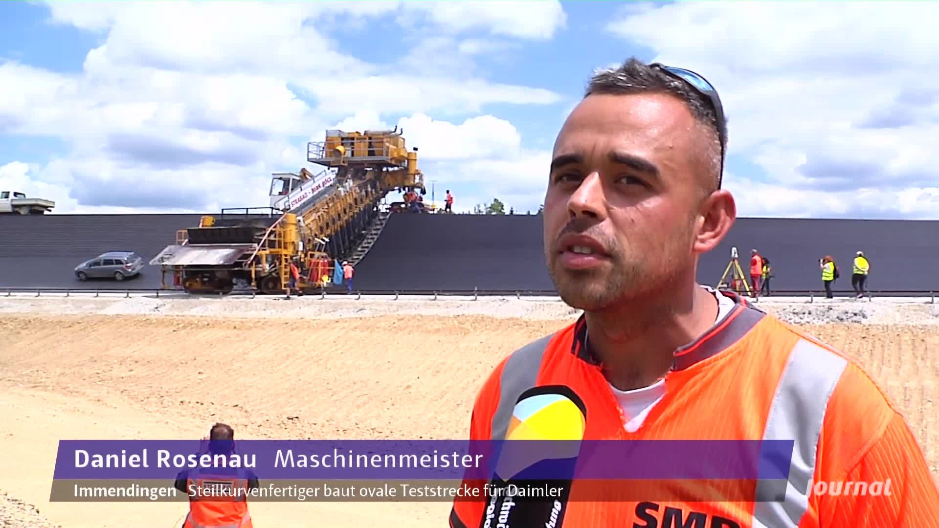 Es ist ein Riesenprojekt. Für 200 Millionen Euro baut der Automobilkonzern Daimler derzeit ein Prüf- und Technologiezentrum in Immendingen im Landkreis Tuttlingen. Highlight ist ein Ovalrundkurs mit steilen Kurven. Daimler kann hier künftig Autos testen – sozusagen auf einer Autobahn ohne Ende. Und um die zu bauen, braucht es ein ganz spezielles Gerät.