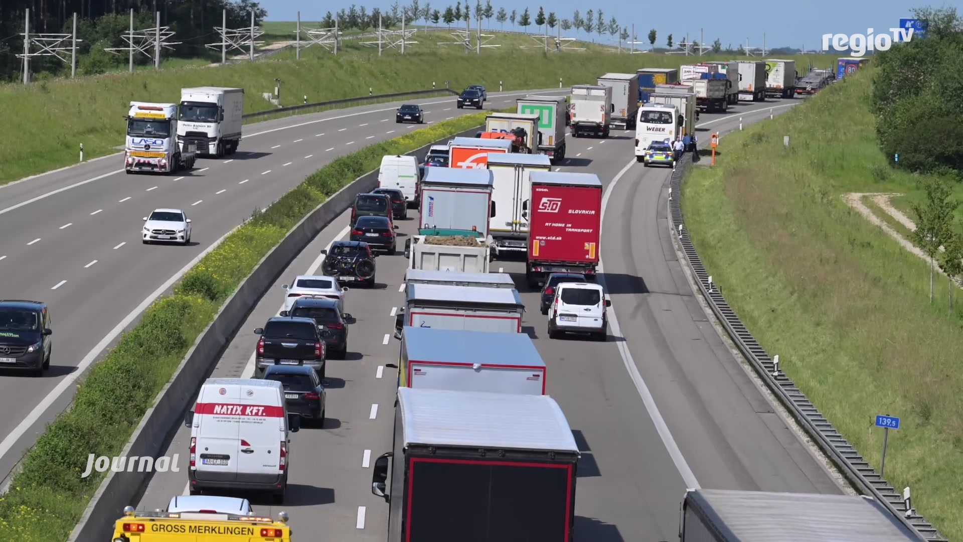 Stundenlange Behinderungen wegen drei Unfällen auf der A8 in Richtung Stuttgart. Heute Morgen hat ein Lkw wegen einer Panne am Drackensteiner Hang einen Rückstau bis Merklingen verursacht. Dann ging’s erst so richtig los: An der Ausfahrt Merklingen kam es zum ersten Unfall. Ein paar hundert Meter weiter dann der zweite Unfall, bei dem ein Lkw-Fahrer leicht verletzt worden ist. Der Fahrer eines Autotransporters hat zu spät gebremst und blieb am Heck des Lkw hängen. Der Unfallverursacher ist ins Krankenhaus gebracht worden. Bei Aichen dann der dritte Unfall: Ein Lastwagen ist wegen des Staus versehentlich zurückgerollt und hat einem Omnibus den Außenspiegel abgerissen.