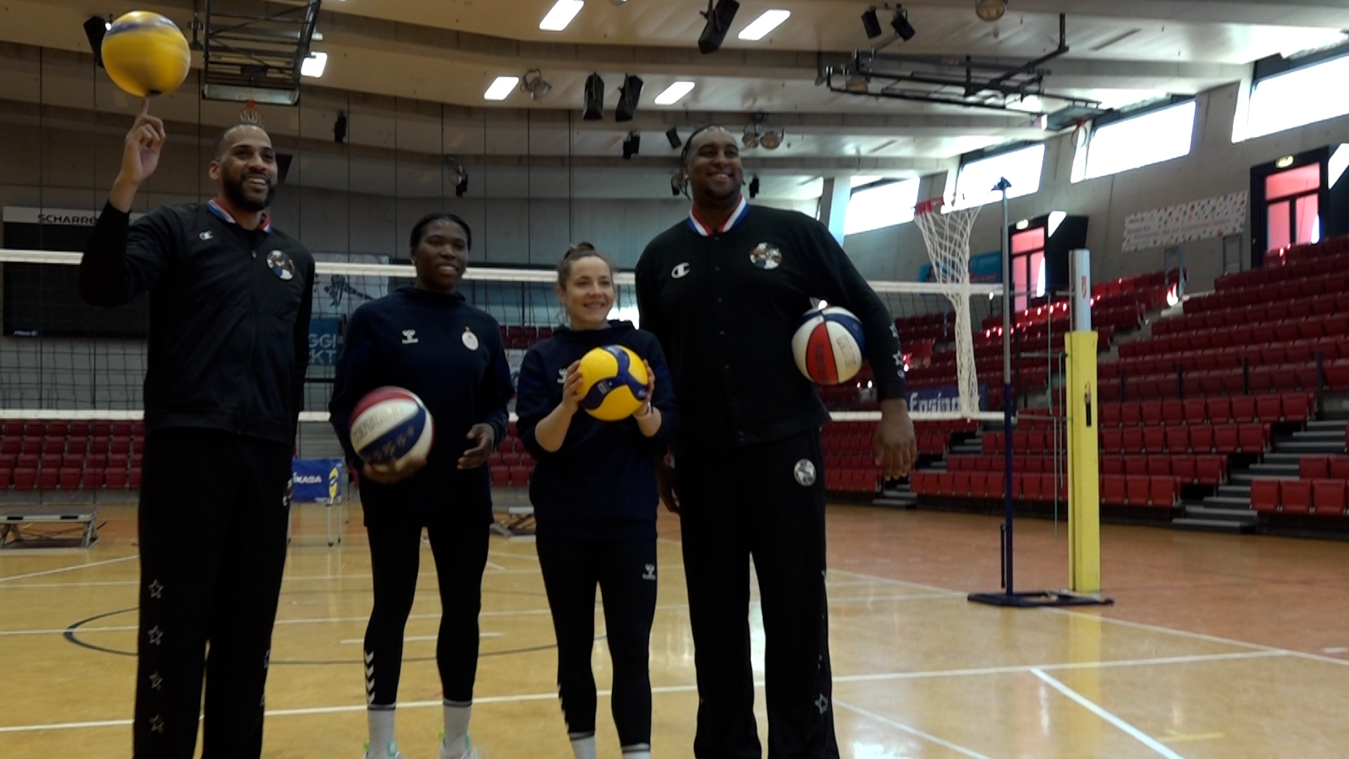 Die Volleyballerinnen vom Allianz MTV starten am Wochenende in die Playoffs um die deutsche Meisterschaft – gestern stand für 2 Spielerinnen aber noch eine Trainingseinheit der besonderen Art auf dem Programm – Hot Rod de la Rosa und Zeus McClurkin von den legendären Harlem Globetrotters waren zu Gast.