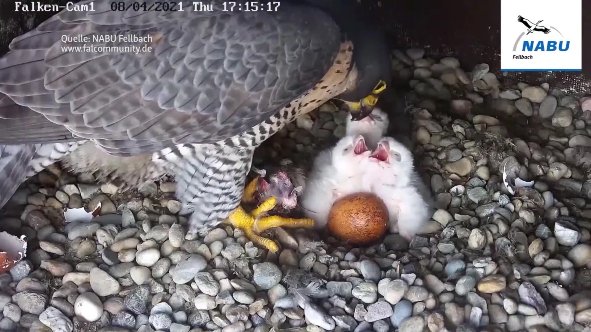 Der Wanderfalken-Nachwuchs auf dem Schwabenlandtower in Fellbach gedeiht prächtig. Aus den drei männlichen und einem weiblichen Küken sind bereits kleine Raubvögel geworden. Am Wochenende hat der NABU Fellbach die jungen Vögel beringt. Die Ringe können dem NABU wertvolle Informationen über den weiteren Lebensweg der Wanderfalken liefern. Die vier Küken sind am 8. und 9. April geschlüpft. Mittlerweile sind sie schon zwischen 600 und 700 Gramm schwer. Über zwei Webcams, die der NABU im Nistkasten installiert hat, können die vier jungen Raubvögel seitdem rund um die Uhr beobachtet werden. Die Live-Videos und auch Archiv-Videos und weitere Informationen zum Falken-Nachwuchs gibt es auf dieser Seite: https://falcommunity.de/